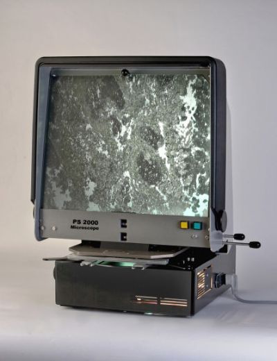 PS2000 Microscope -basic unit in working order for white light,inclunding revolving slide holder,lens change control with one lens 14.8X fitted as standard for the total view of a standard thin section on the screen,two vacant lens mounts for exchange lenses,variable brightness control.Halogen-Xenon-lamp 250W 24V,main power connection with transformer 110-220-240V,AC 50/60Hz. PS2000 显微投影显微镜,白光,偏光及补偿器都为自动转换,主机包括可旋转样品台;物镜转换控制(物镜台上包括一个14.8倍的物镜及两个物镜台位),在14.8倍的物镜下,可观测到样片的整体,视域开阔。机身带亮度控制器,可调节光线强弱 ,显微镜专用卤素氙气灯(250W,24V)一个,**寿命约为250小时;主电源接口(变压110-220-240V ,交流电50/60Hz)